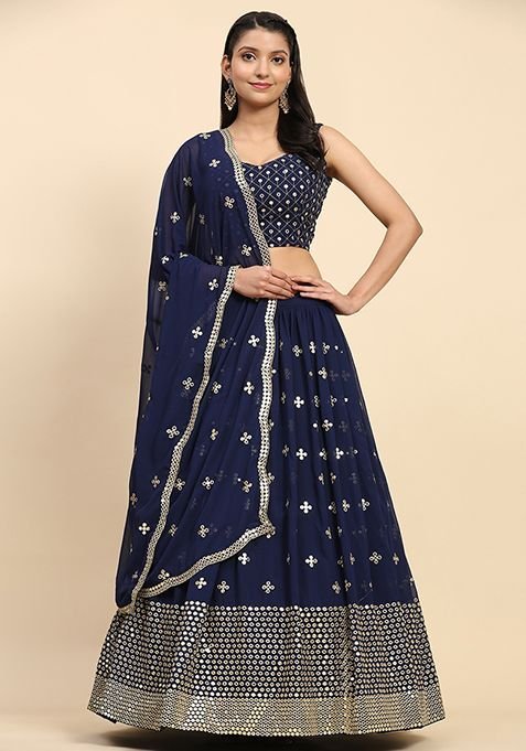 Add to cartQuick ViewLehengas, Shop By Category, WomenBlue Sequin Embroidered Faux Georgette Lehenga Set