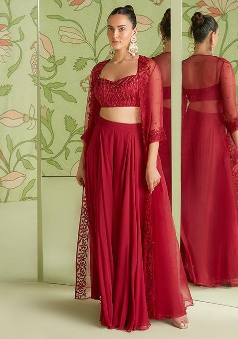 Add to cartQuick ViewLehengas, Shop By Category, WomenWine Zari Sequin Embroidered Georgette Lehenga Set